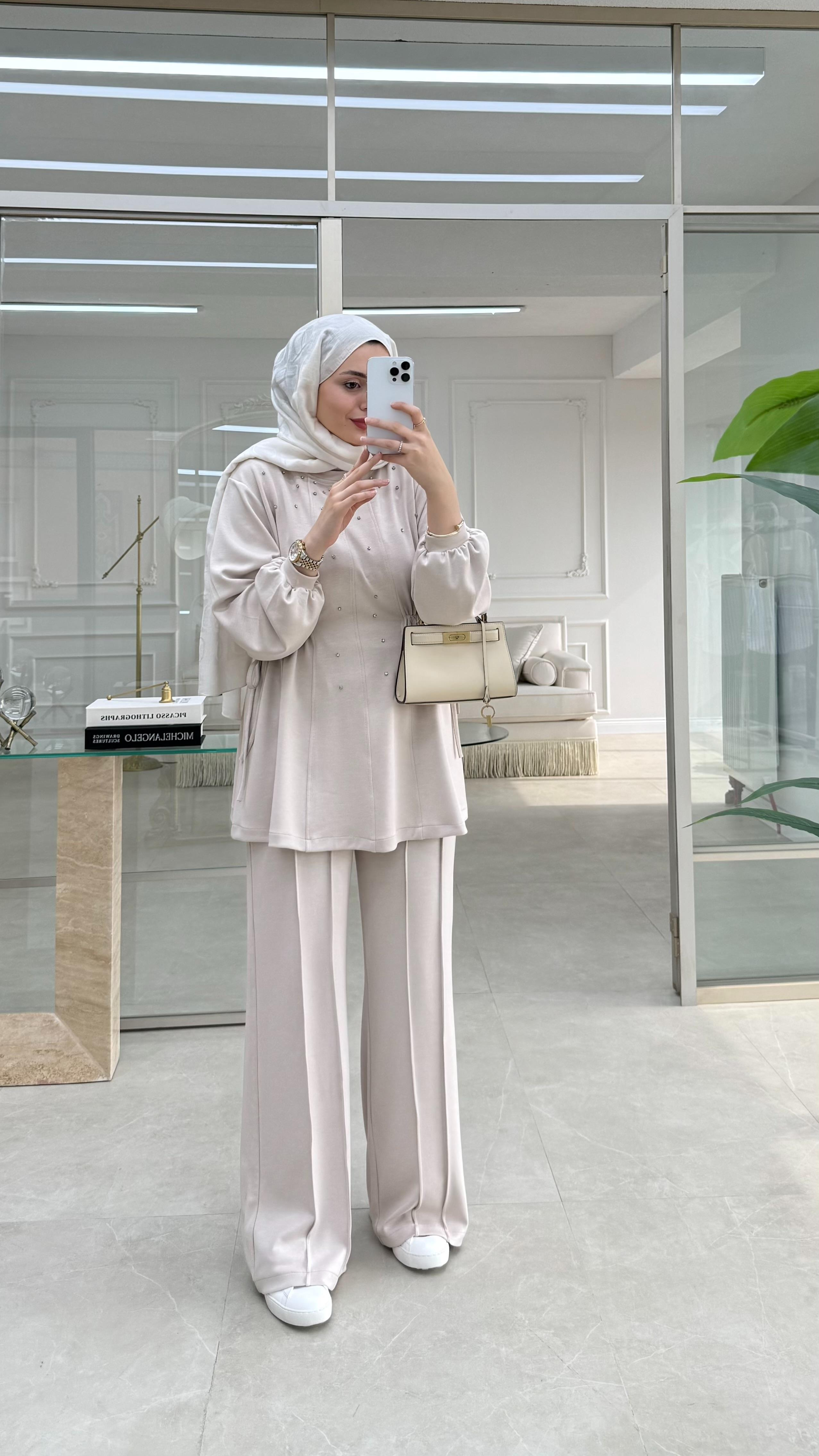Ürünümüz oysho kumaştan üretilmiştir, oversize kalıptır, pantolon yüksel bel lastiklidir. Dört mevsim kullanıma uygundur