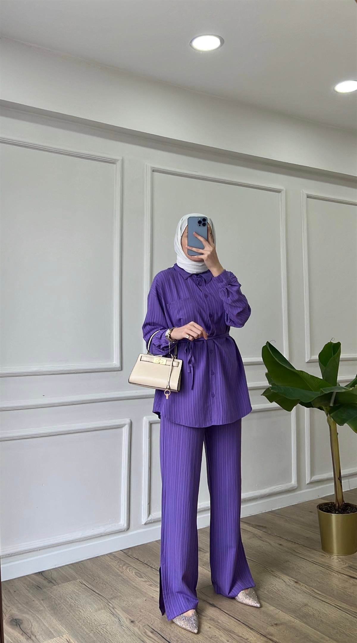 Pantolon yüksek bel,beli lastiklidir. 1 beden basen 94. 2 beden basen 100 cm. Pantolon boy 15 cm. Yırtmac boy 22 cm